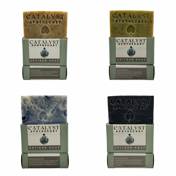 Natural herbs, clays, and minerals enrich our bars with gentle detoxifying, nourishing, and soothing properties, promoting healthier, revitalized skin with every use.